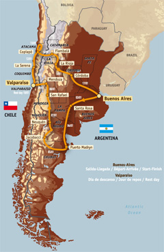 Dakar-rallyt fick ställas in 2008 efter alla oroligheter i Västafrika och nu har tävlingen flyttats över Atlanten till Sydamerika och avgörs 3-18 januari. Starten går i Argentinas huvudstad Buenos Aires och därefter följer en resa på ca 957 mil genom Argentina och Chile innan cirkeln sluts med mål i Buenos Aires den 18 januari.