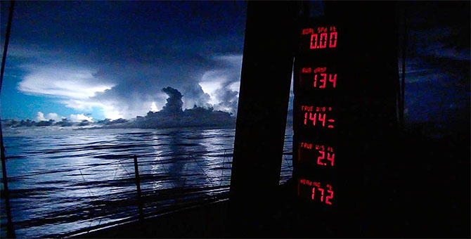 Från min första etapp ombord Team SCA, etapp 4 från Sanya till Auckland. Inledningen var tuff med motvind, strömt vatten och upprört hav. Efter att vi passerat ekvatorn seglade vi igenom ett par övergångszoner. En natt var mer spektakulär än de andra och bjöd på regn, åska och blixt efter blixt, moder jord demonstrerade sin makt och sina krafter.