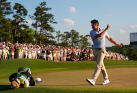 Stundtals var temperaturen uppe runt 30 grader, men de vattenbesöken hade Ludvig Åberg kunnat vara utan på Augistas mästerskapsbana.